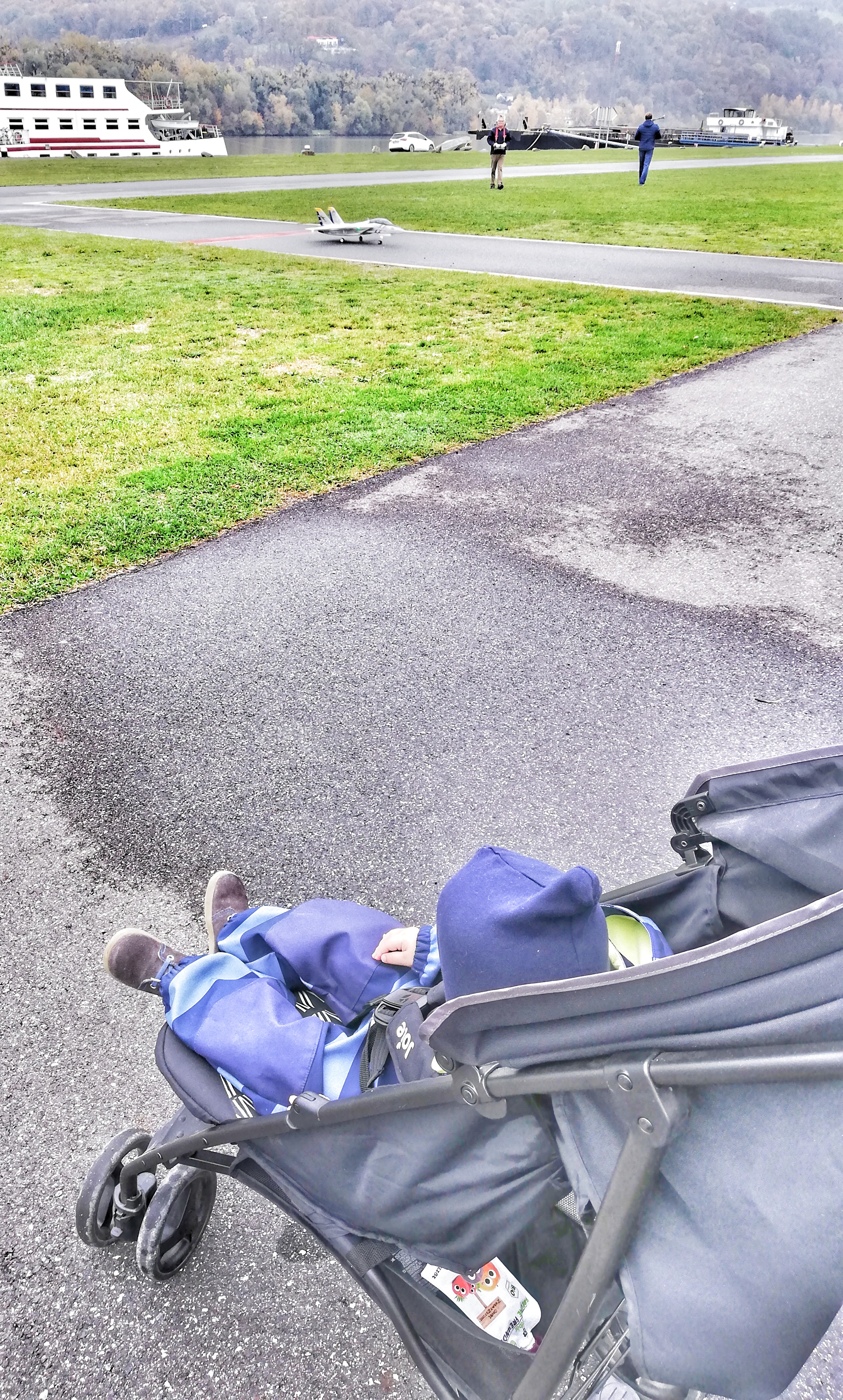Ein zweites Vorhaben, welches ich mir das Männerwochenende mit Little S überlegt habe, war an einen Ort zu fahren, wo wir beide noch nie waren. Das Wetter war eher nicht so toll und das oben genannte Projekt nahm leider mehr Zeit und Wege in Anspruch, als mir lieb war, aber Zwischen Baumarkt und Spielplatz ging mir ein Licht auf und ich bog rechts ab und fuhr gemeinsam mit Little S zum Modellflugplatz im Hafen in Linz! Wegen des schlechten Wetters, war dort nicht so viel los, aber auch die zwei Flieger, die unterwegs waren, lösten ziemlich große Begeisterung in Little S aus. Wobei beinahe der Hundeabrichteplatz neben dem Modellflugplatz fast noch spannender für ihn war…