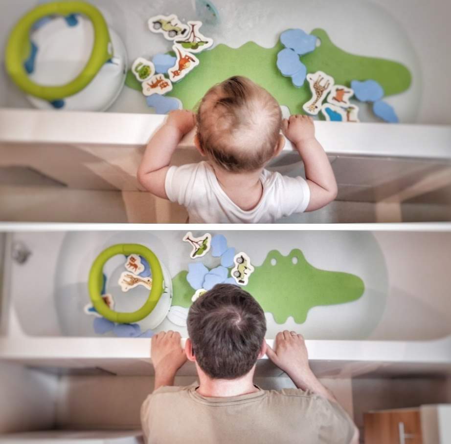 Ich bin Social Media-Junkie…ich gebe es zu. In letzter Zeit tauchten in meiner Facebook-Timeline ein paar Mal Videos auf, welches, wie sich gerade herausgestellt hat, ein Teil der sogenannten #whatthefluff-Challenge ist. Bevor ich jedenfalls wusste, dass es dazu auch eine Challenge gibt, stehen Mrs. S und Little S im Badezimmer. Pirat Little S und ich waren zuvor auf Beutezug in den Welt-Badewannen-Meeren unterwegs. Little S ist schon etwas müde und jammert ein bisschen herum während er abgetrocknet wird. Da fällt meinem Social-Media-Unnützes-Zeug-Hirn dieses Video mit dem Mann und dem Hund ein und schwupp, schon verstecke ich mich hinter dem Handtuch und hüpfe hinter die Wand….und – ihr könnt es schon erahnen – Little S kriegt einen Lachanfall, der seines gleichen sucht.